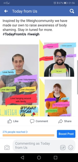 Today from us is a campaign created by #iwill young people to raise awareness of issues important to North Tyneside. Inspired by Jameela Jamil’s @Iweigh campaign on body positivity, Today from us has created their own images which represent what makes them individual.