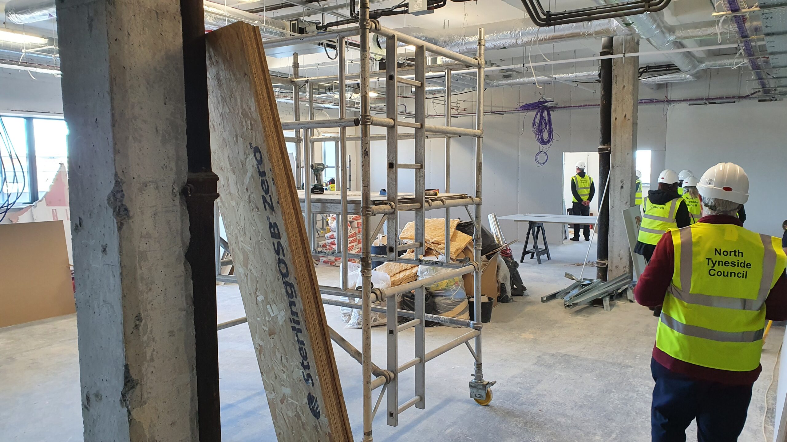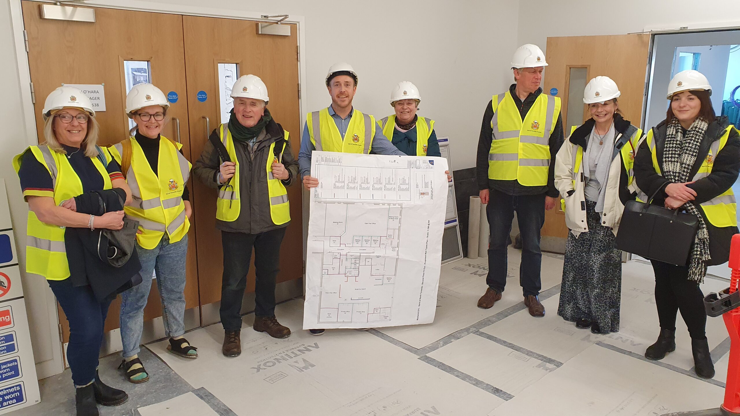 Pictures show an artist impression of the Hub reception and also a recent visit by VODA staff, trustees and North Tyneside Council to visit the work in progress.